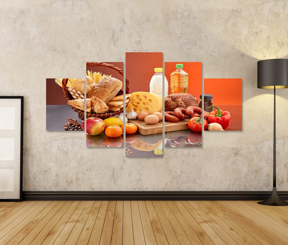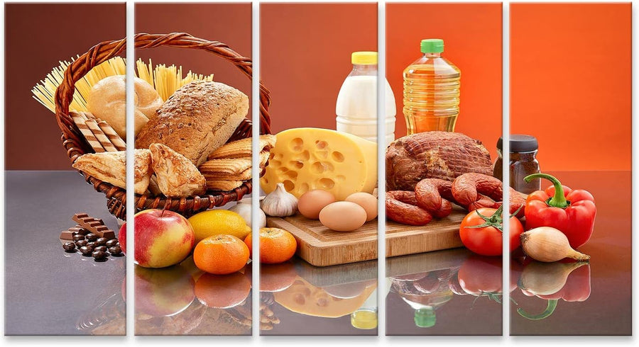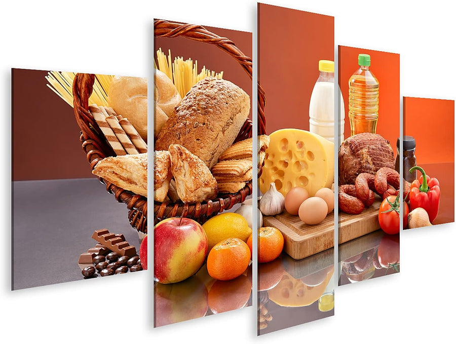 islandburner Bild auf Leinwand Lebensmittel Set Viele Zutaten Leckere Lebensmittel Gespiegelter Tisc