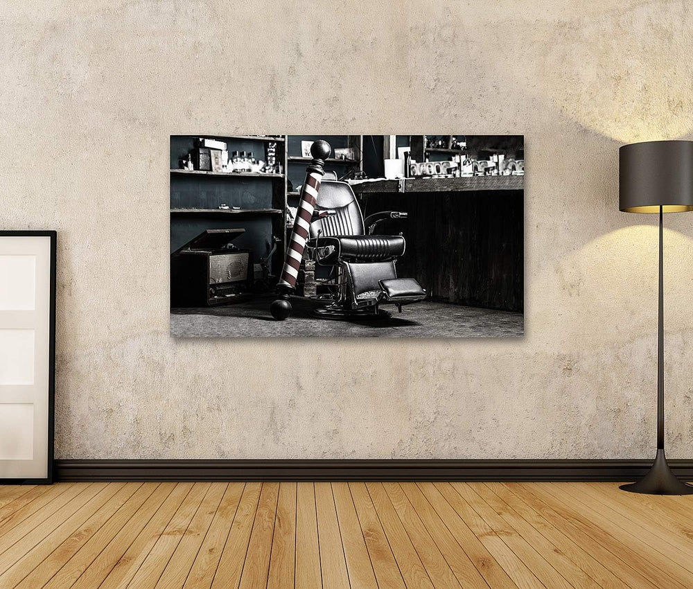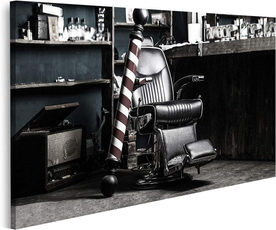 islandburner Bild auf Leinwand Logo Barbershop Vintage Barber Stuhl Hairstylist Bilder Wandbilder Po
