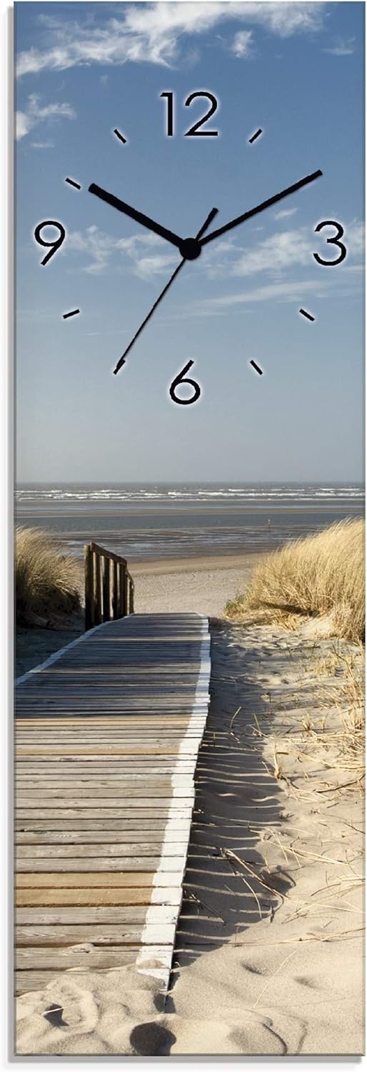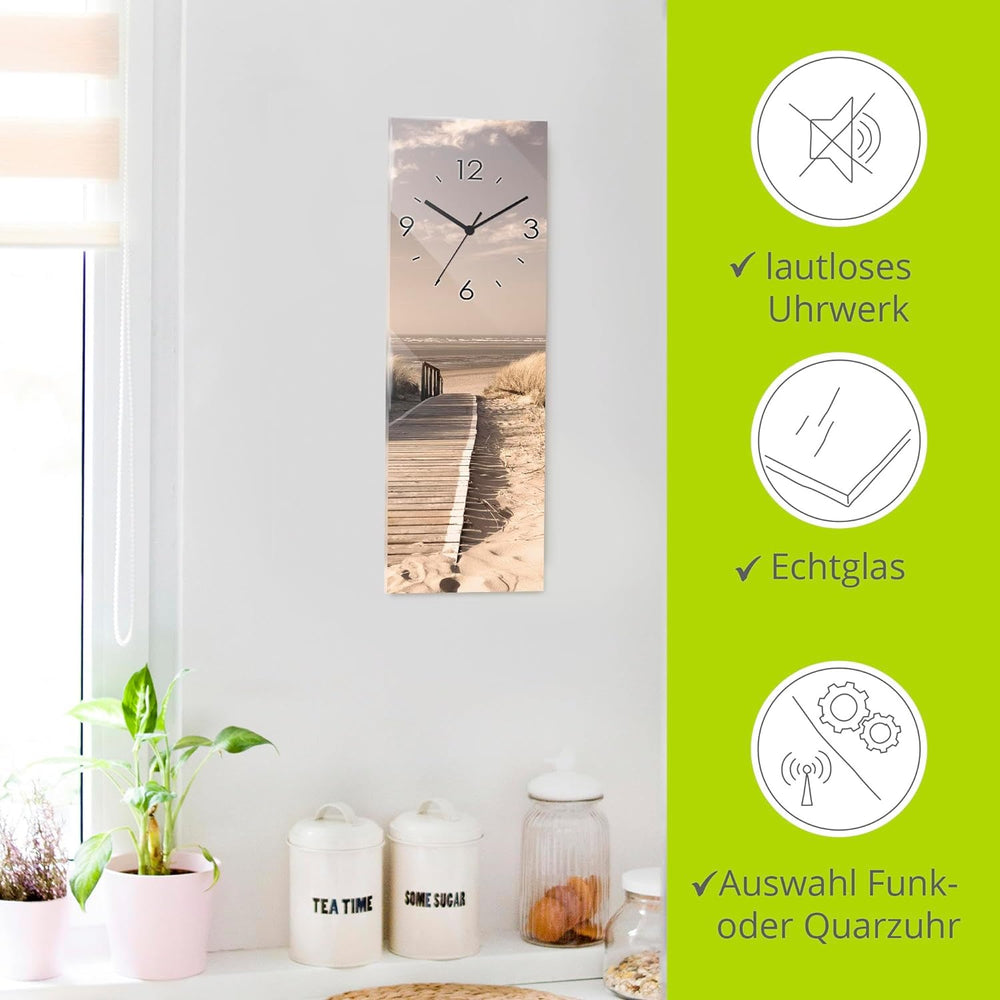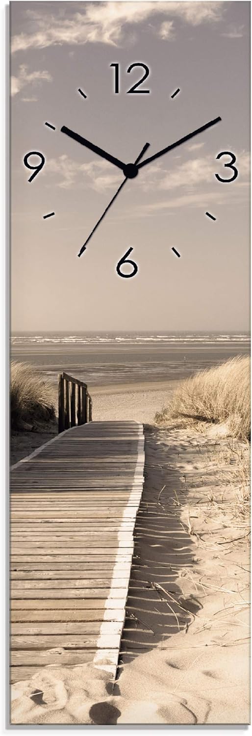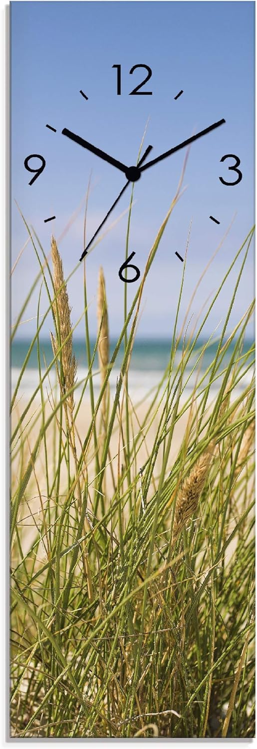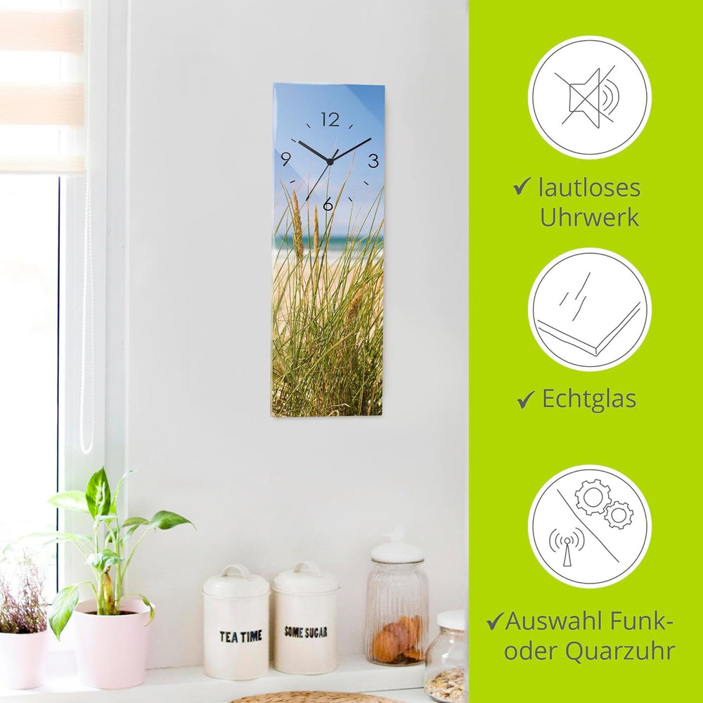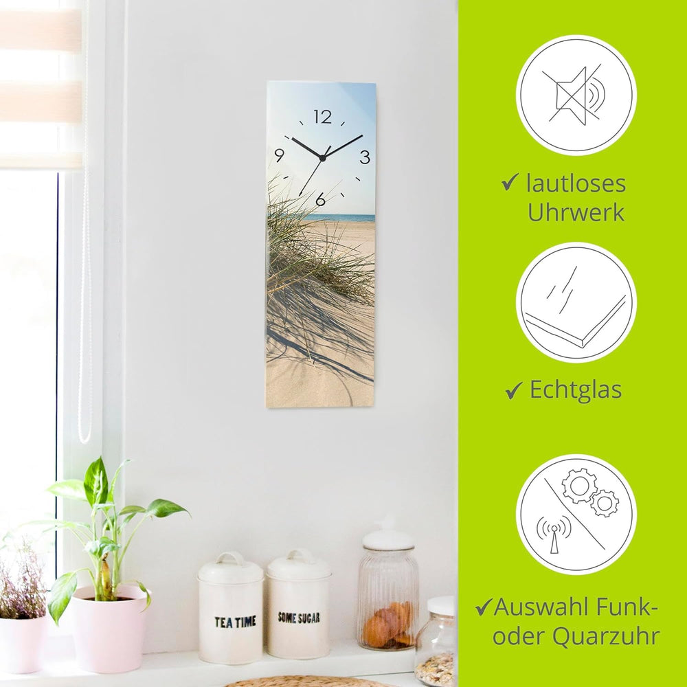 ARTLAND Wanduhr ohne Tickgeräusche Glas Quarzuhr 20x60 cm Rechteckig Lautlos Strand Meer Nordsee Dün
