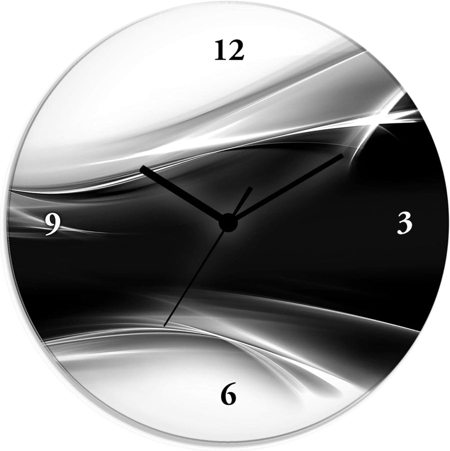 ARTLAND Wanduhr ohne Tickgeräusche Glas Quarzuhr Ø 30 cm Rund Lautlos Design Welle Abstrakt Modern K