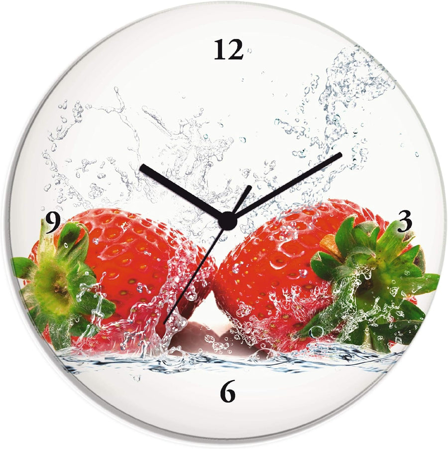 ARTLAND Wanduhr ohne Tickgeräusche Glas Quarzuhr Ø 30 cm Rund Lautlos Obst Früchte Erdbeere im Wasse