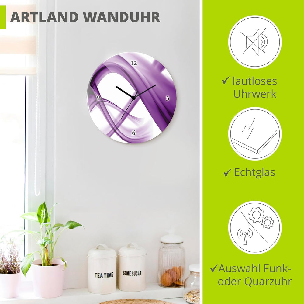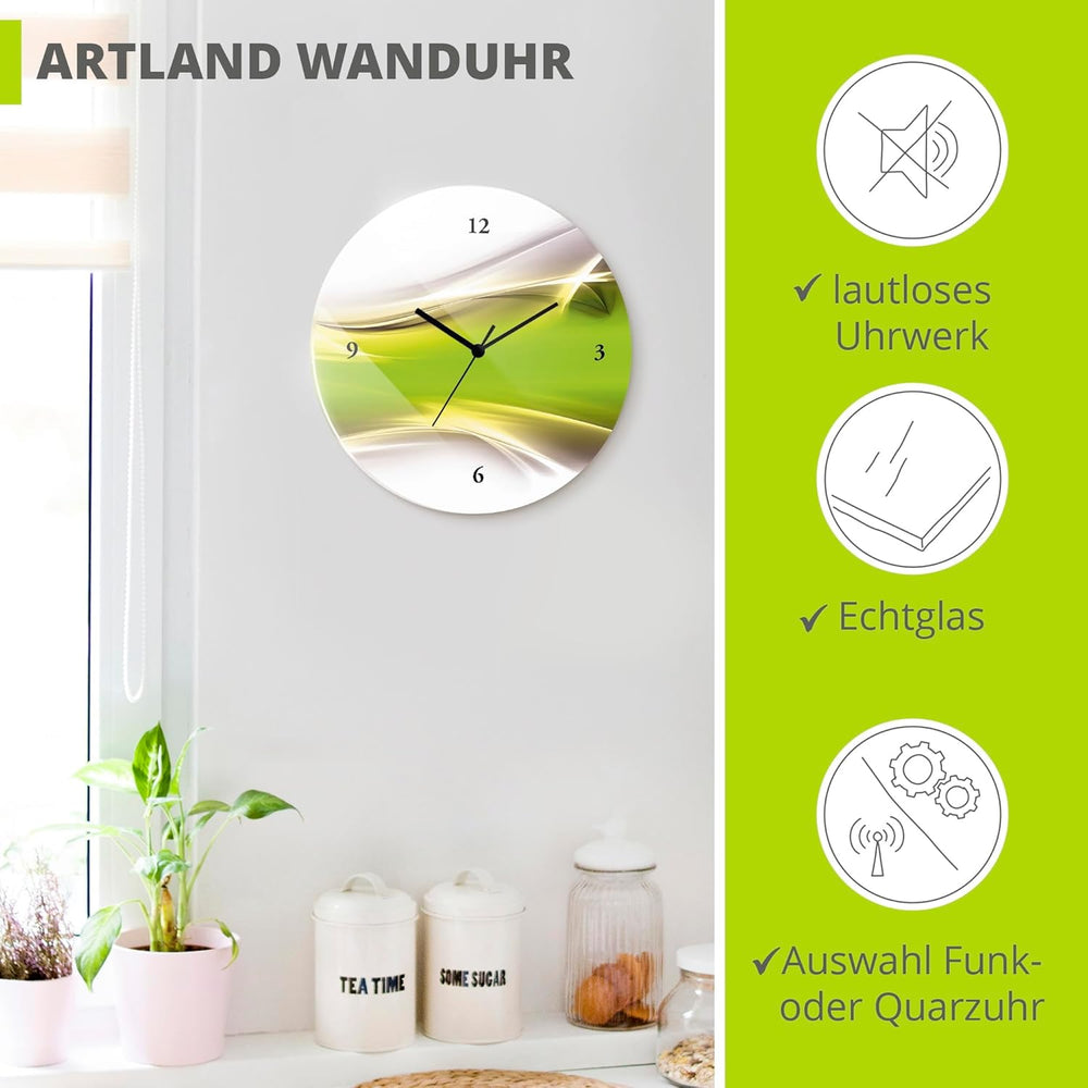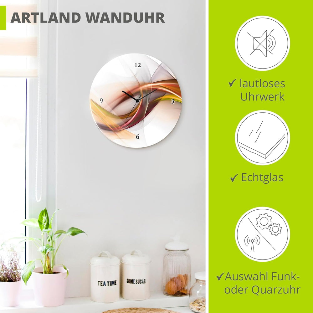 ARTLAND Wanduhr ohne Tickgeräusche Glas Quarzuhr Ø 30 cm Rund Lautlos Design Abstrakt Kunst Modern A