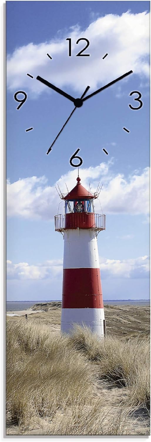 ARTLAND Wanduhr ohne Tickgeräusche Glas Quarzuhr 20x60 cm Rechteckig Lautlos Strand Meer Leuchtturm