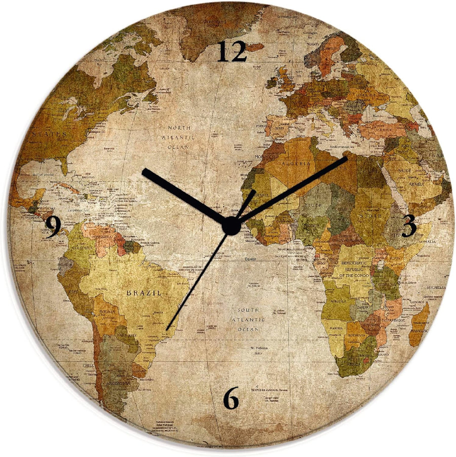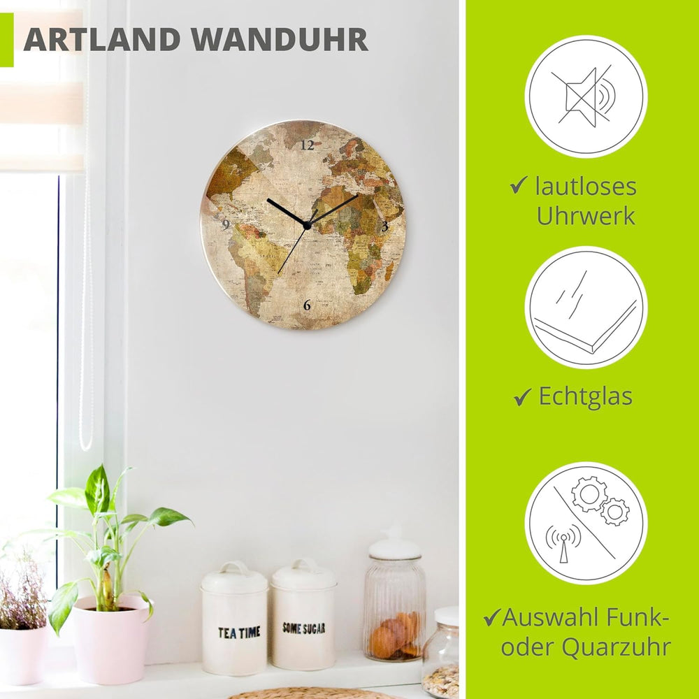 ARTLAND Wanduhr ohne Tickgeräusche Glas Quarzuhr Ø 30 cm Rund Lautlos Weltkarte Weltkarte Quarzuhr,