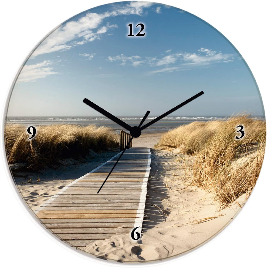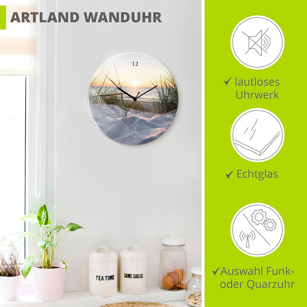 ARTLAND Wanduhr ohne Tickgeräusche Glas Quarzuhr Ø 30 cm Rund Lautlos Strand Meer Düne Nordsee Urlau