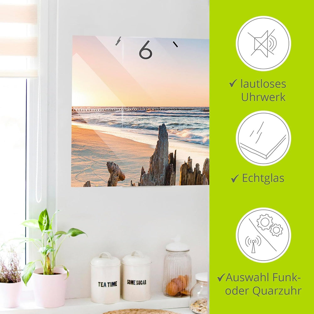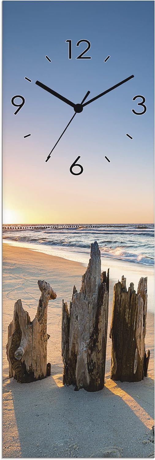 ARTLAND Wanduhr ohne Tickgeräusche Glas Quarzuhr 20x60 cm Rechteckig Lautlos Strand Meer Ostsee Sonn