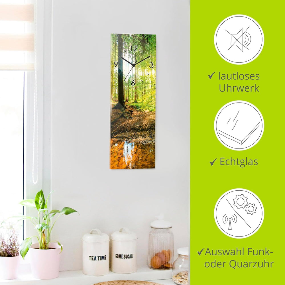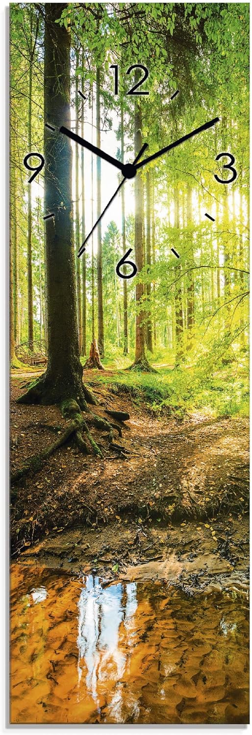 ARTLAND Wanduhr ohne Tickgeräusche Glas Quarzuhr 20x60 cm Rechteckig Lautlos Wald Bach Landschaft Na