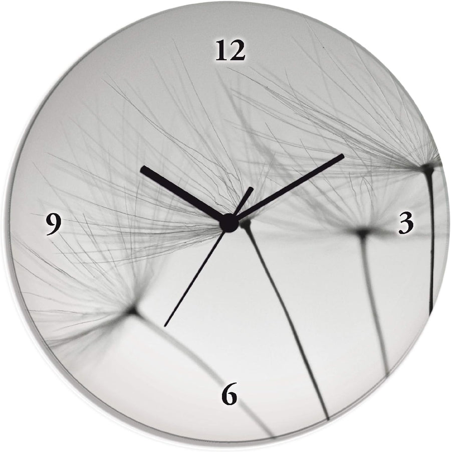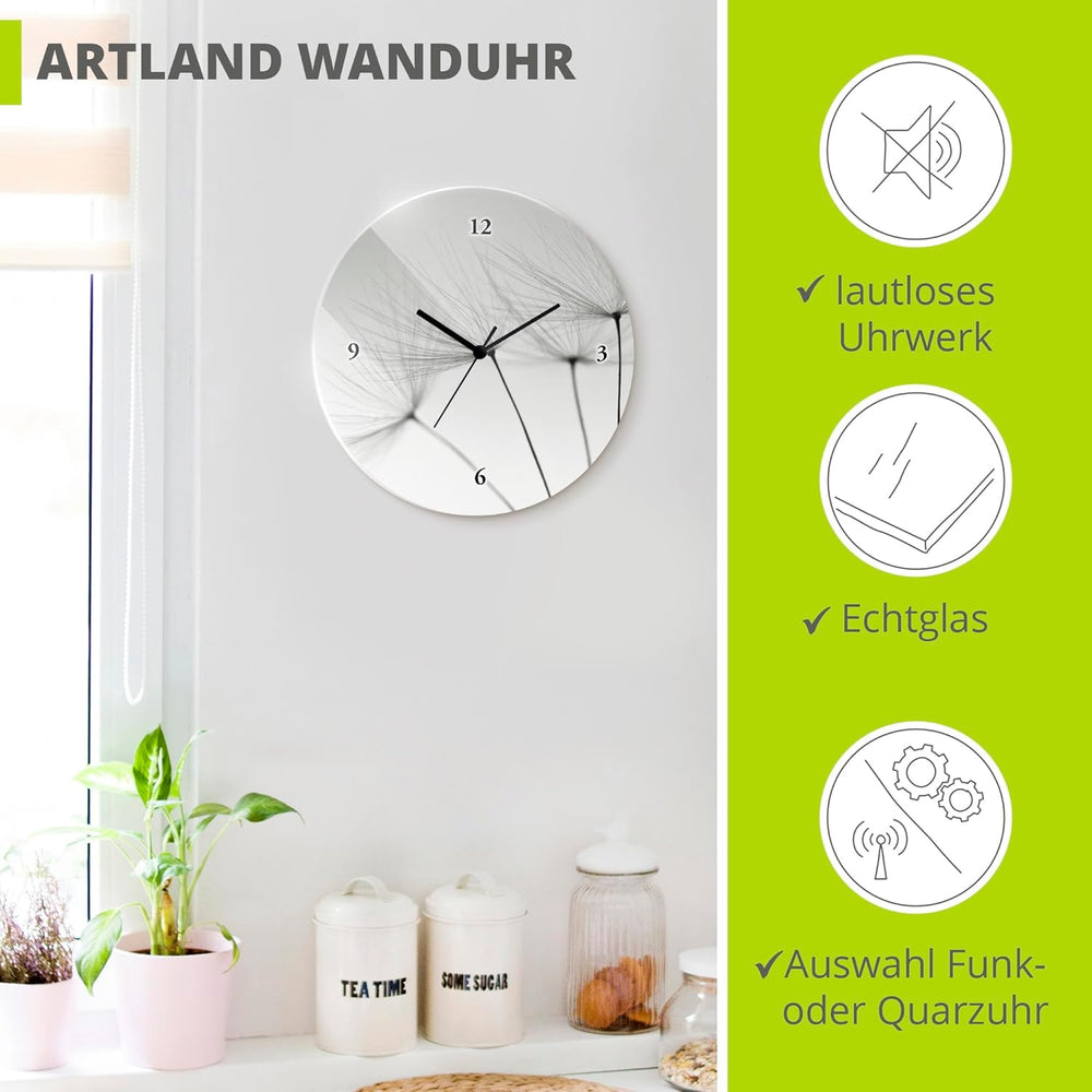 ARTLAND Wanduhr ohne Tickgeräusche Glas Quarzuhr Ø 30 cm Rund Lautlos Blumen Pusteblume Natur Modern