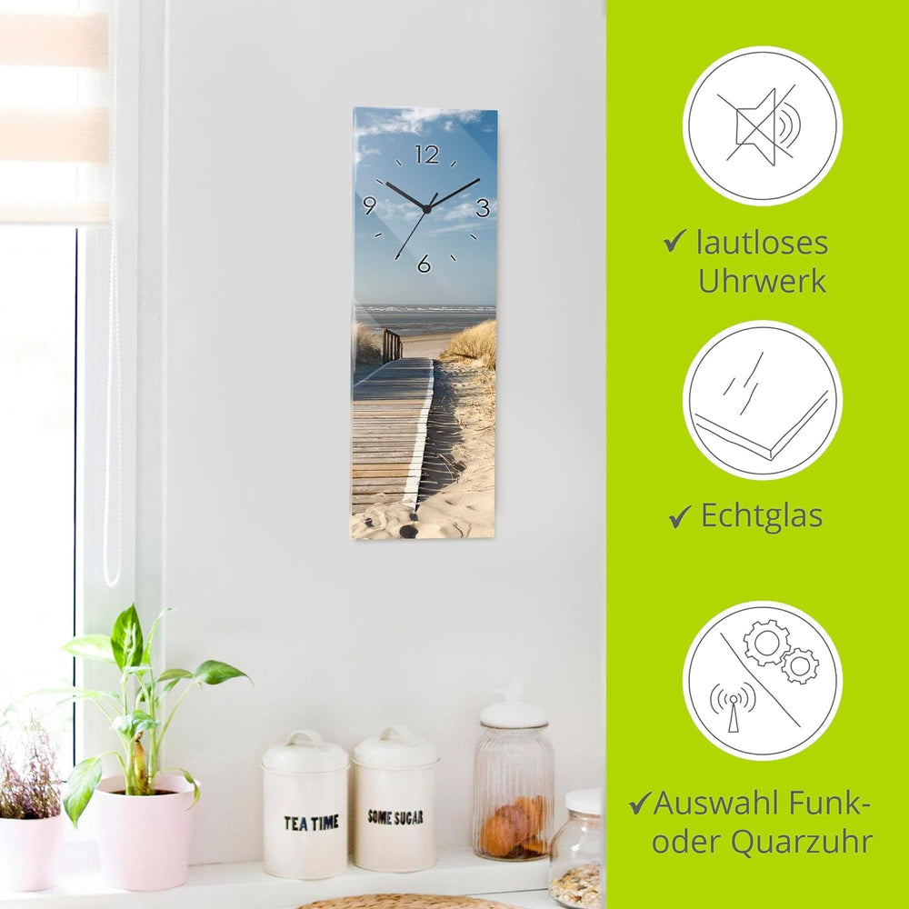 ARTLAND Wanduhr ohne Tickgeräusche Glas Quarzuhr 20x60 cm Rechteckig Lautlos Strand Ostsee Meer Land