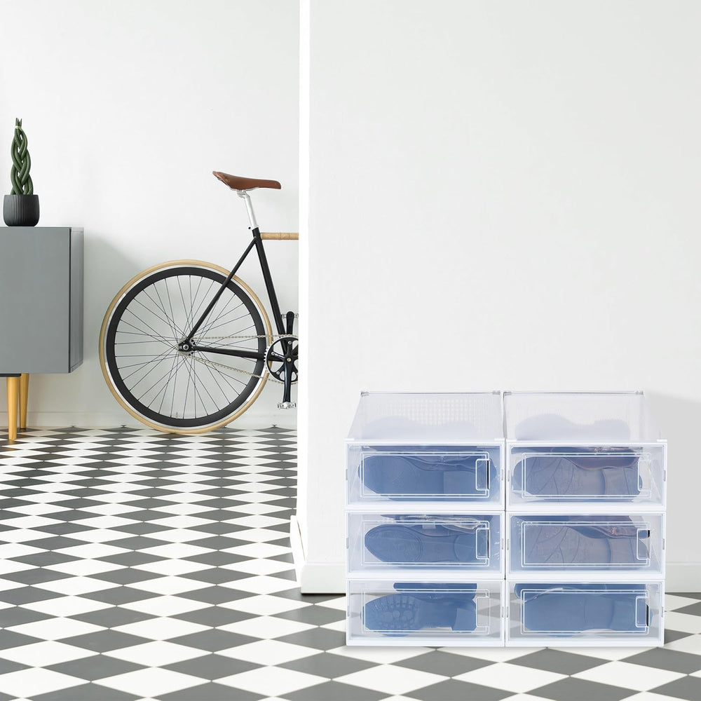 Relaxdays Schuhboxen 6er Set, für High Heels, Schuhorganizer stapelbar, bis Grösse 42, Lüftungsschli