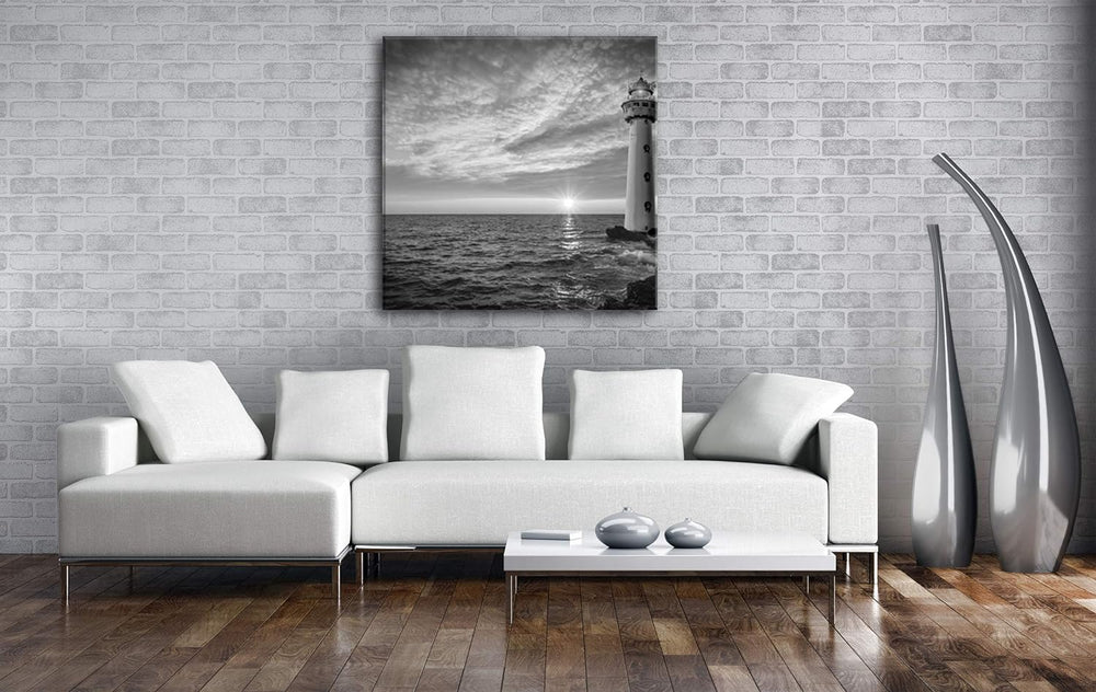 deyoli gigantischer Leuchtturm Format: 70x70 Effekt: Schwarz&Weiss als Leinwandbild, Motiv fertig ge