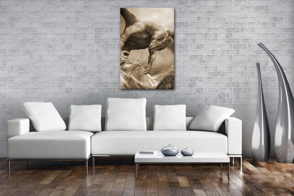deyoli gigantischer Drache Format: 80x60 Effekt: Sepia als Leinwand, Motiv fertig gerahmt auf Echtho