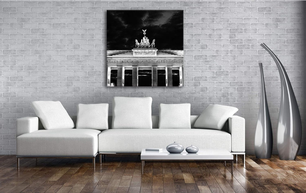 deyoli gigantisches Brandenburger Tor bei Nacht Effekt: Schwarz/Weiss im Format: 80x60 als Leinwandb