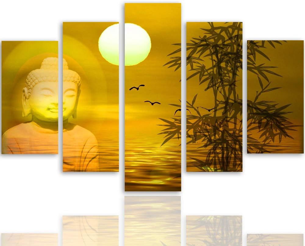Feeby Wandbild XXL 5 Teilig Buddha Leinwandbild Sonne Baum Natur Zen gelb 300x140 cm Leinwandbild 30