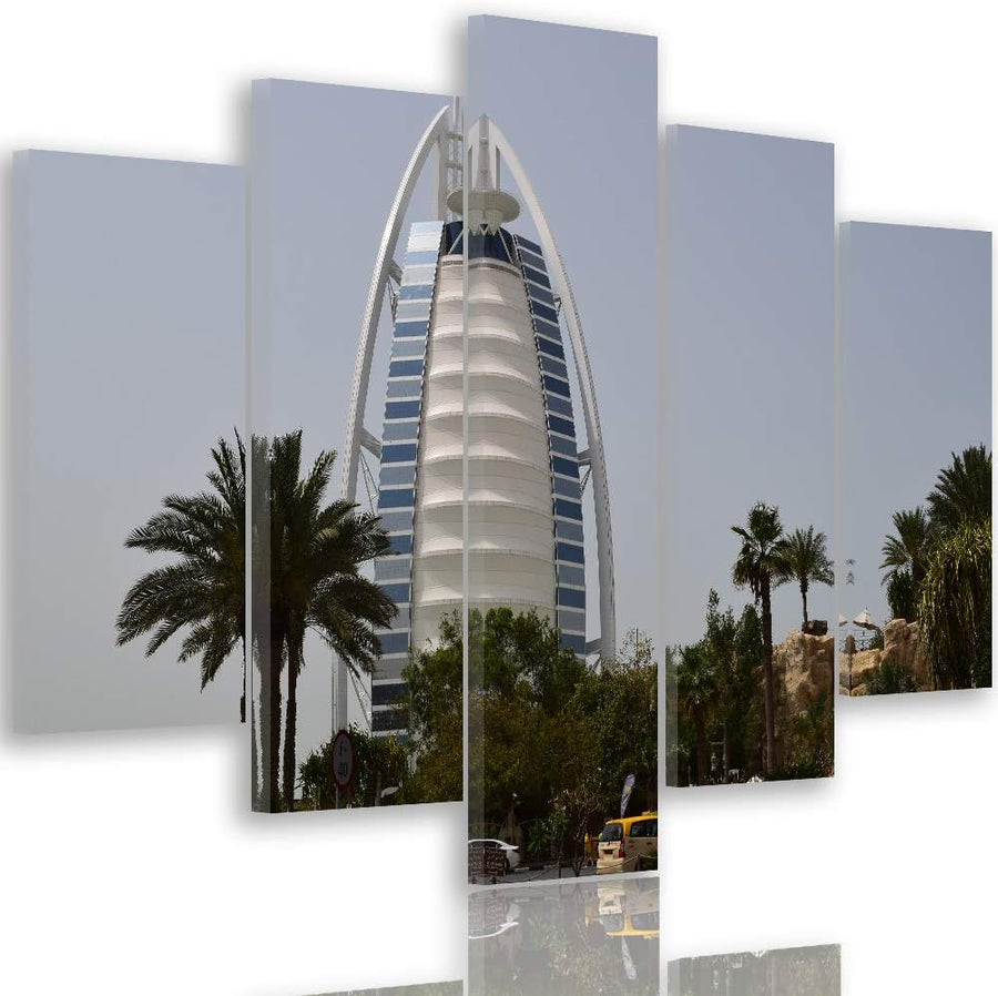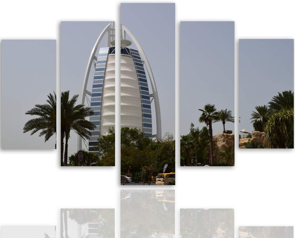 Feeby Wandbild XXL 5 Teilig Dubai Leinwandbild Burj al Arab Architektur bunt 300x140 cm Leinwandbild