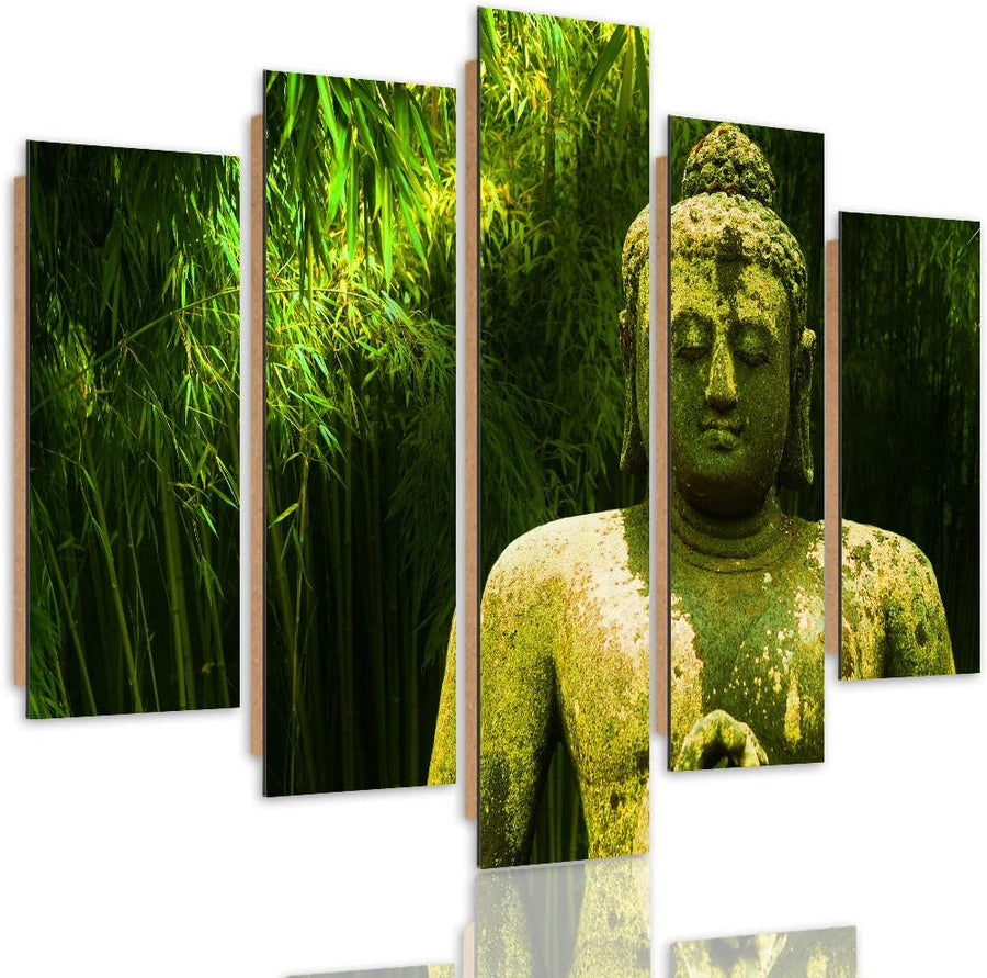 Feeby Wandbild XXL 5 tlg Buddha Deco Panel Bild Statue Natur Blätter grün 300x140 cm Deco panel 300x