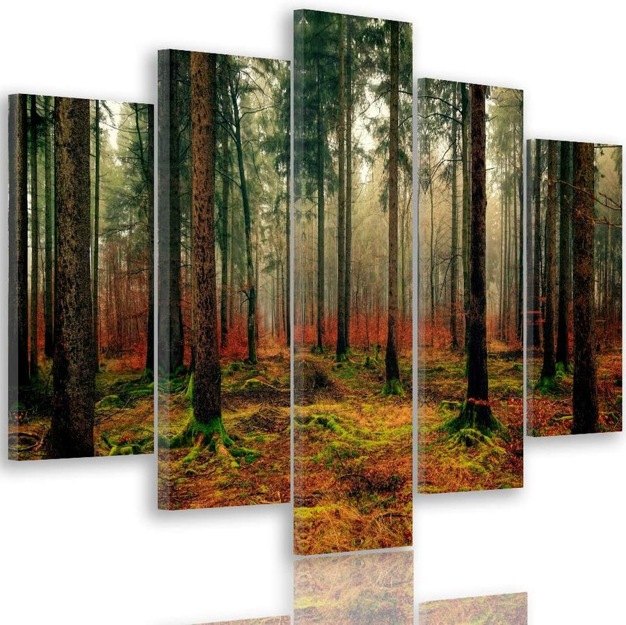 Feeby Wandbild XXL 5 Teilig Landschaft Leinwandbild Baum Wald Natur braun 300x140 cm Leinwandbild 30