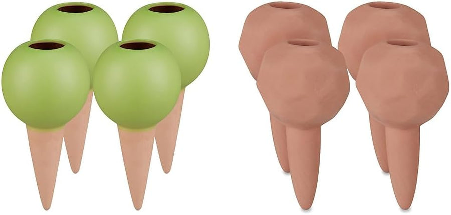 Relaxdays Tonspitzen Bewässerung, 4er Set & Tonkegel Bewässerung 4er Set, Pflanzen Wasserspender Ton