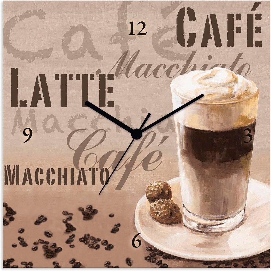 ARTLAND Wanduhr ohne Tickgeräusche Leinwand Quarzuhr 30x30 cm Quadratisch Lautlos Kaffee Coffee Cafe