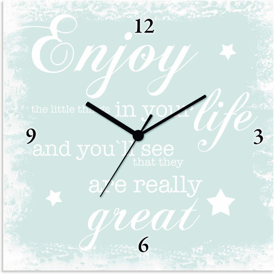 ARTLAND Wanduhr ohne Tickgeräusche Leinwanduhr Quarzuhr lautlos Quadratisch 30x30 cm Design Spruch B