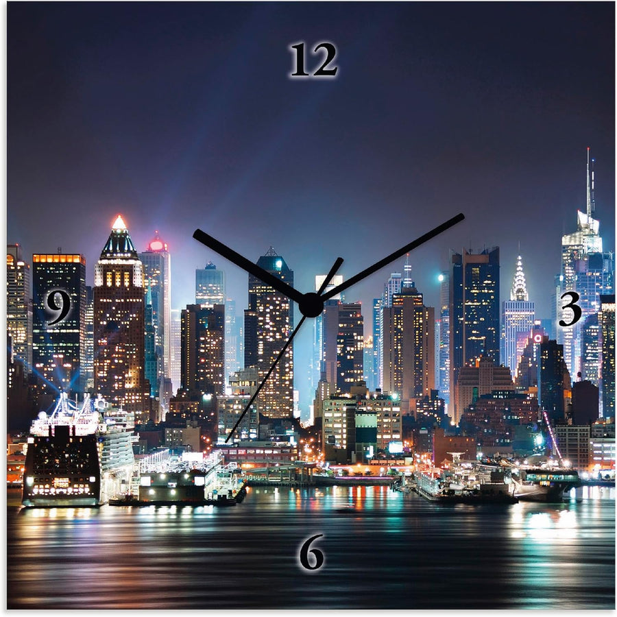 ARTLAND Wanduhr ohne Tickgeräusche Leinwand Quarzuhr 30x30 cm Quadratisch Lautlos New York City Time