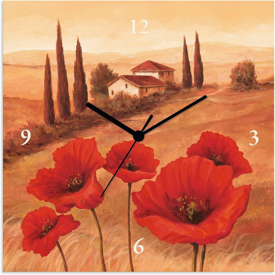 ARTLAND Wanduhr ohne Tickgeräusche Leinwand Quarzuhr 30x30 cm Quadratisch Lautlos Toskana Landschaft