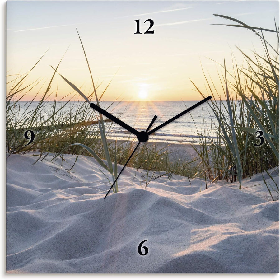 ARTLAND Wanduhr ohne Tickgeräusche Leinwand Quarzuhr 30x30 cm Quadratisch Lautlos Strand Meer Ostsee