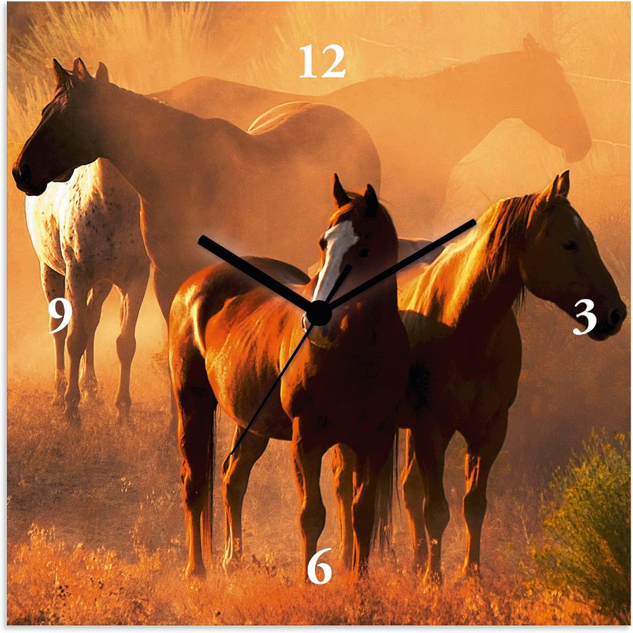 ARTLAND Wanduhr ohne Tickgeräusche Leinwand Quarzuhr 30x30 cm Quadratisch Lautlos Pferd Tiere Natur