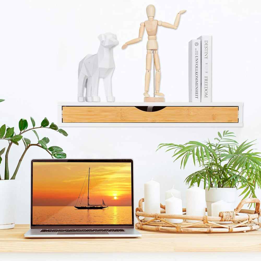 Relaxdays Wandregal mit Schublade, HxBxT: 8 x 60 x 24 cm, Wandschublade skandinavisches Design, MDF,
