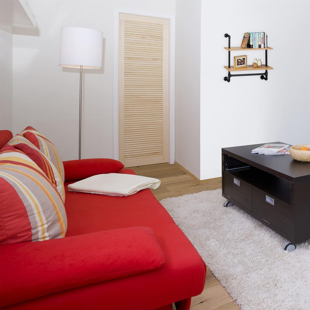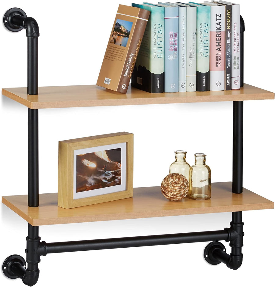 Relaxdays Wandregal Industrie, 2 Ablagen, Wandmontage Bücherregal, Holz, Vintage, Retro-Look, HBT: 6