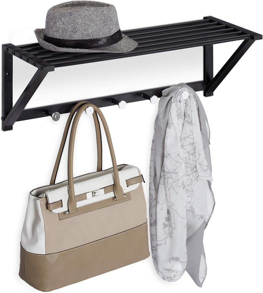 Relaxdays Wandgarderobe mit Ablage, Garderobenleiste 5 Haken, Flur & Bad, modern, Metall, HBT 23 x 6
