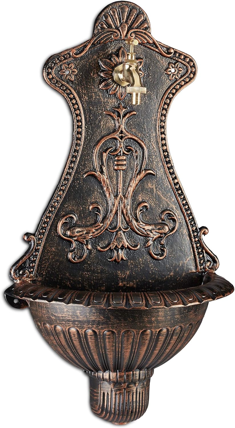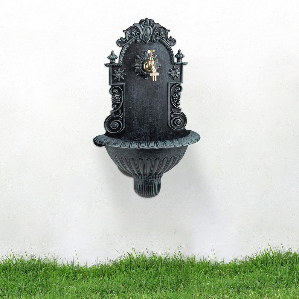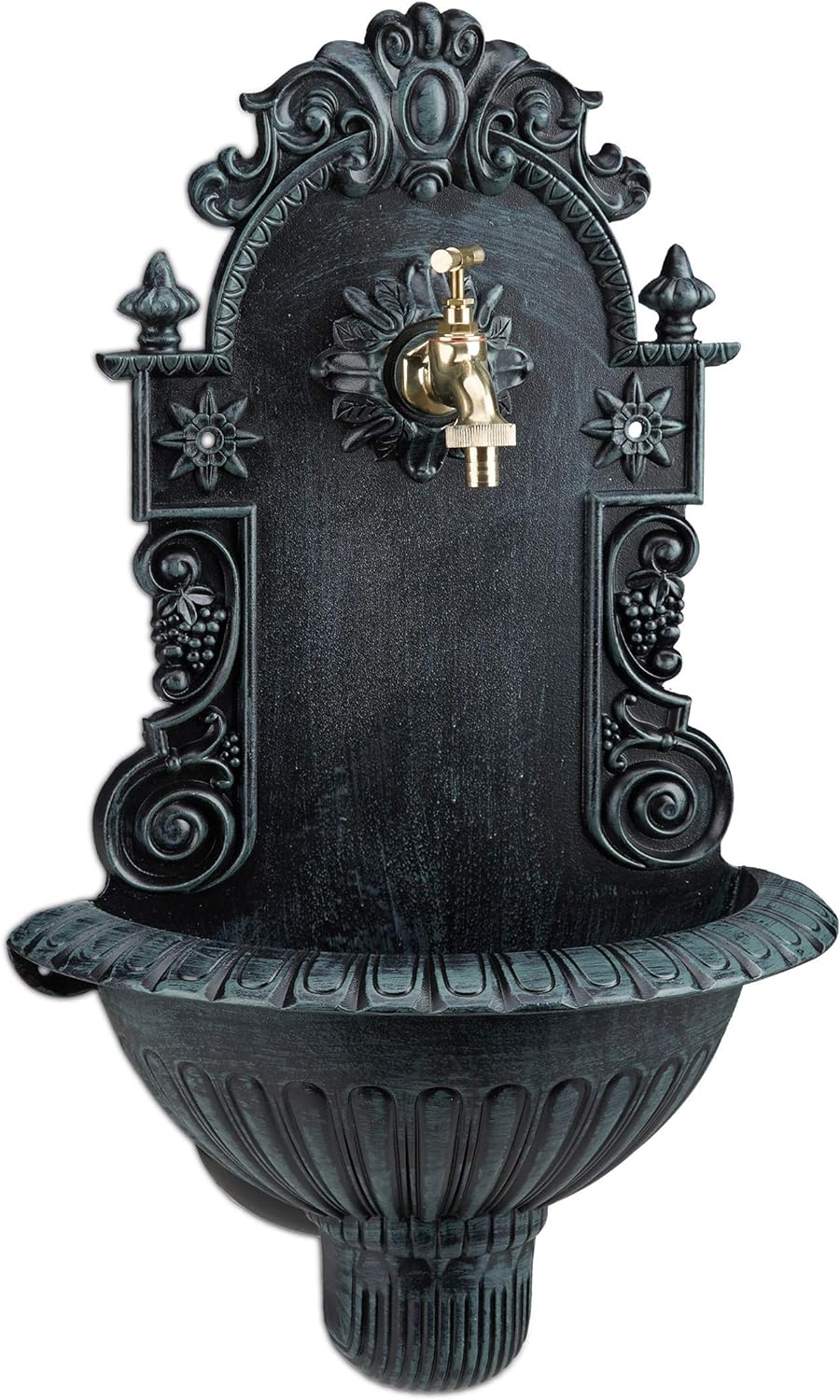 Relaxdays Wandbrunnen antik, mit Wasserhahn, nostalgisch, Waschbecken Garten, Aluguss, HBT 40 x 24,5