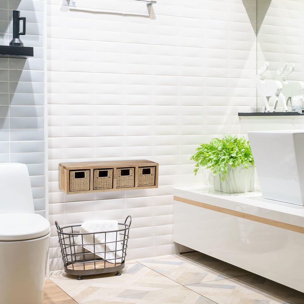 Relaxdays Wandregal Walnuss 4 herausnehmbare Körbe, natürliches Design, zur Wandmontage, natur 4 Fäc