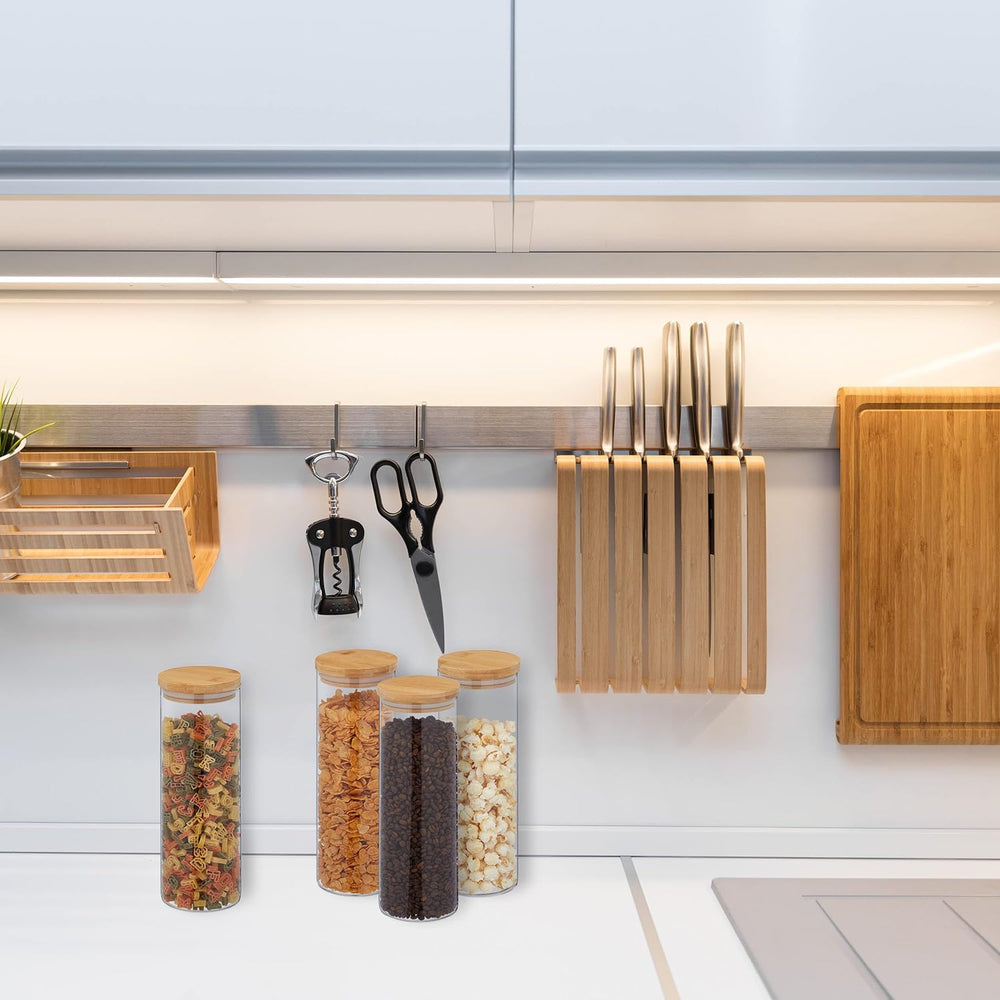 Relaxdays Vorratsgläser mit Bambusdeckel, 4er Set, runde Vorratsdosen aus Glas, 1600 ml, luftdicht,
