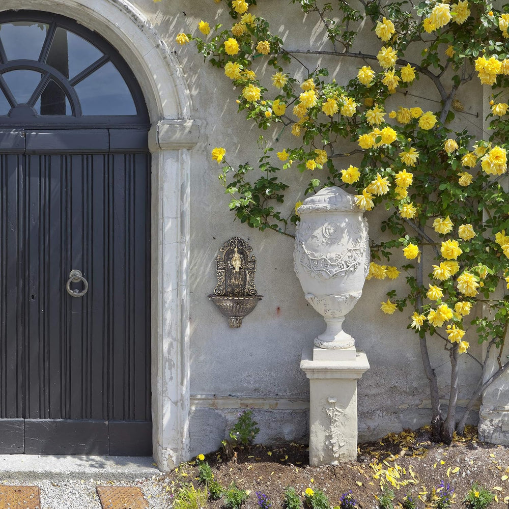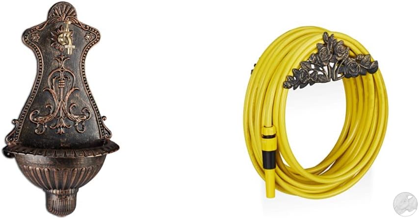 Relaxdays Wandbrunnen, Aussenwaschbecken & Schlauchhalter Antik, Gartenschlauchhalter mit Rosenmotiv