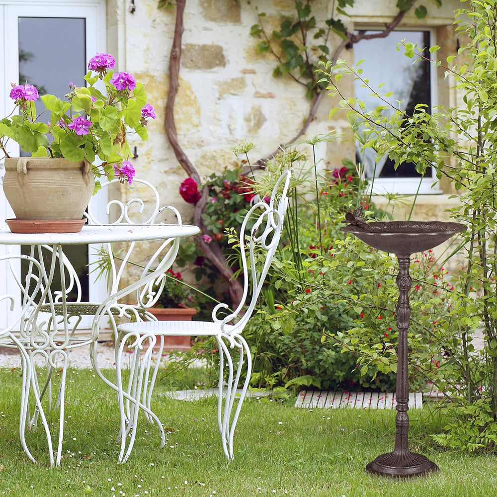 Relaxdays Vogeltränke Gusseisen Vogelbad mit Ständer, Wildvogeltränke für Garten, antikes Design,74,