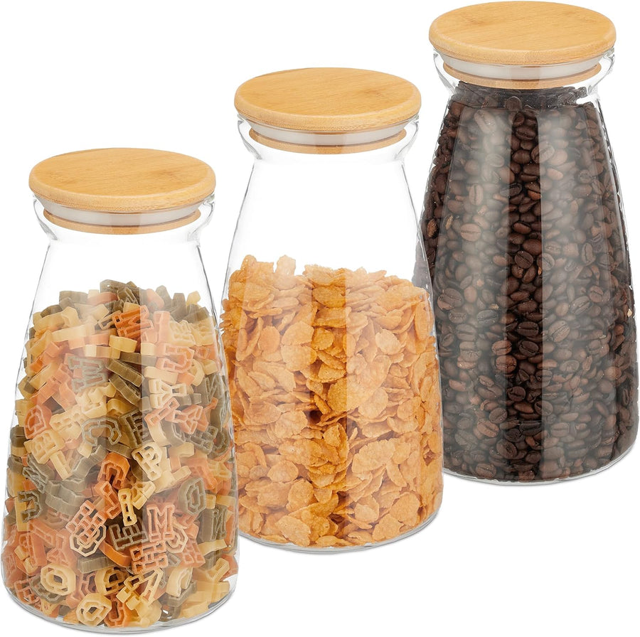 Relaxdays Vorratsgläser mit Deckel, 3er Set, 1400 ml, luftdicht, Lebensmittel-Lagerung, Vorratsdosen