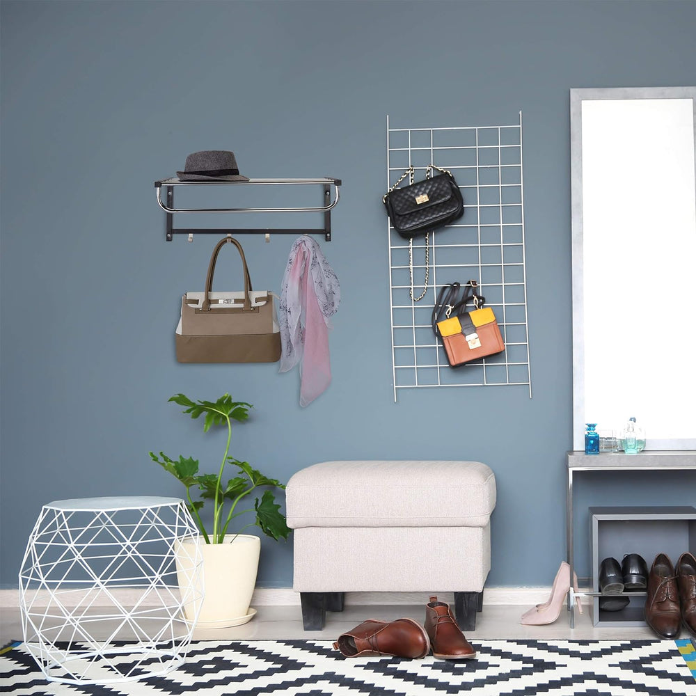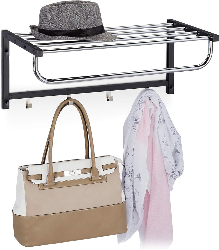 Relaxdays Wandgarderobe mit Ablage, Garderobenleiste 4 Haken, Flur & Bad, modern, Metall, HBT 25 x 6