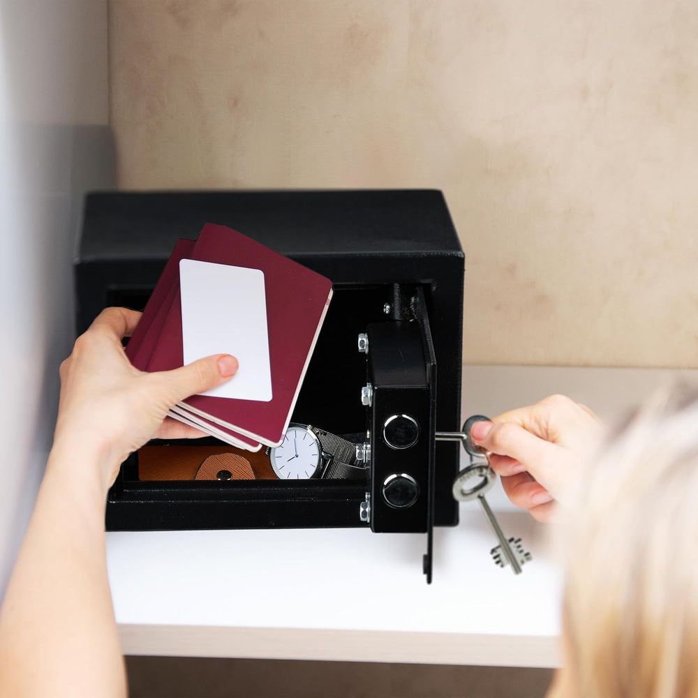 Relaxdays Wandtresor, 2 Schlüssel, Doppelbolzenverriegelung, Wand & Boden, HBT: 17x23x17 cm, Tresor