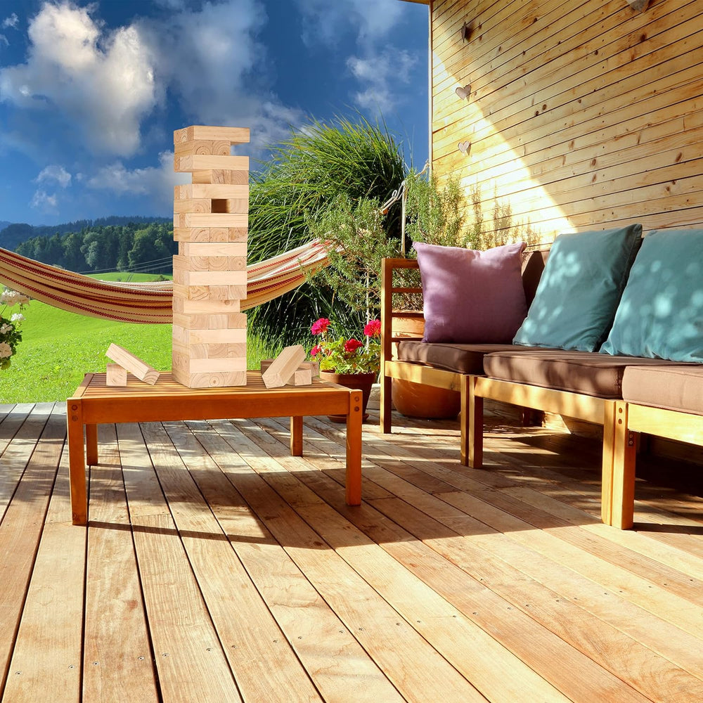 Relaxdays Wackelturm XXL, Holzturm Spiel Garten, mit Tasche, 54 Steine, Riesenwackelturm HBT: 90 x 2
