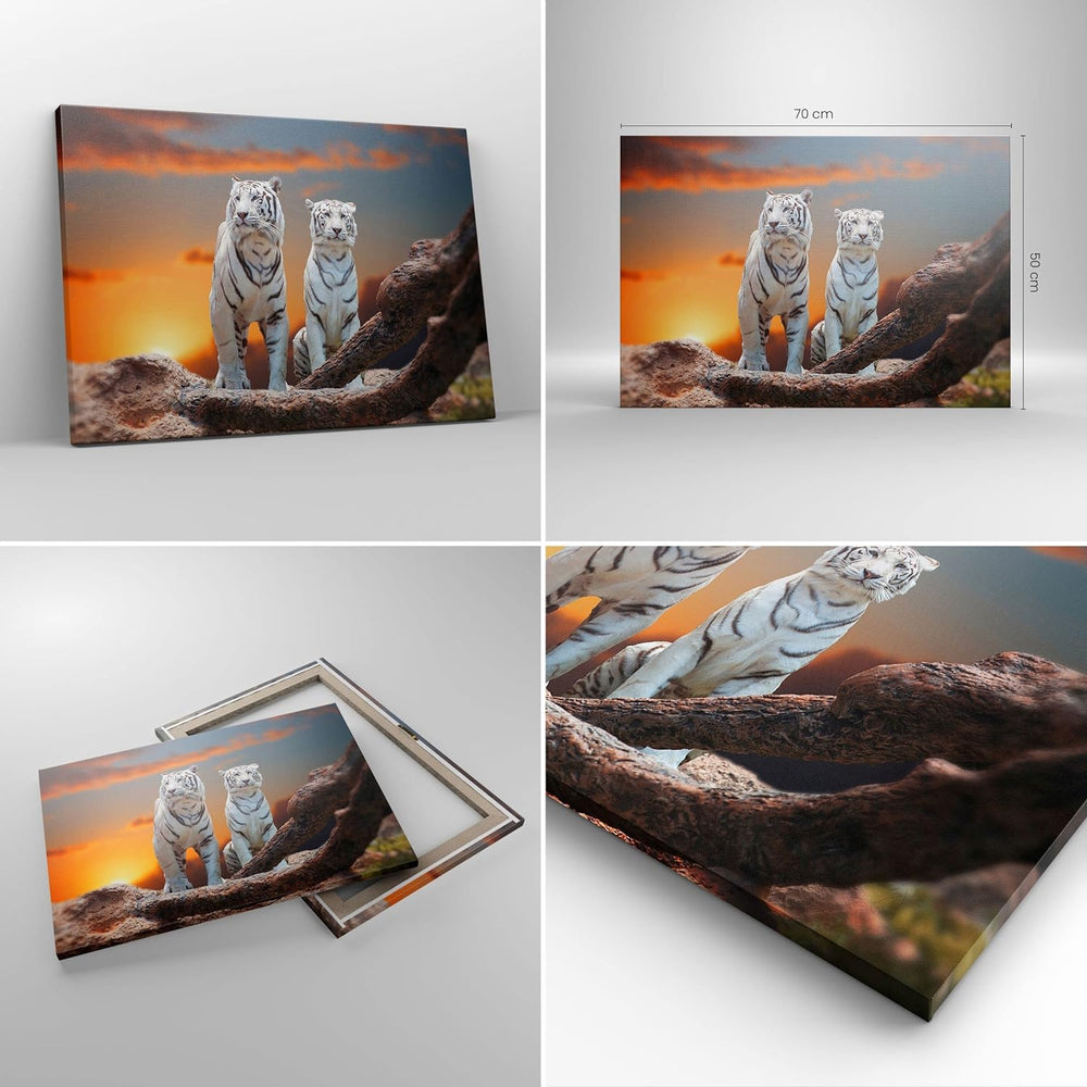 Bilder auf Leinwand Tiger weiss Rock Sonnenuntergang Leinwandbild 70x50cm Wandbilder Dekoration Wohn