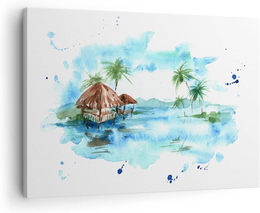 Bilder auf Leinwand Tropen Wasser Bungalow Ufer Leinwandbild 70x50cm Wandbilder Dekoration Wohnzimme
