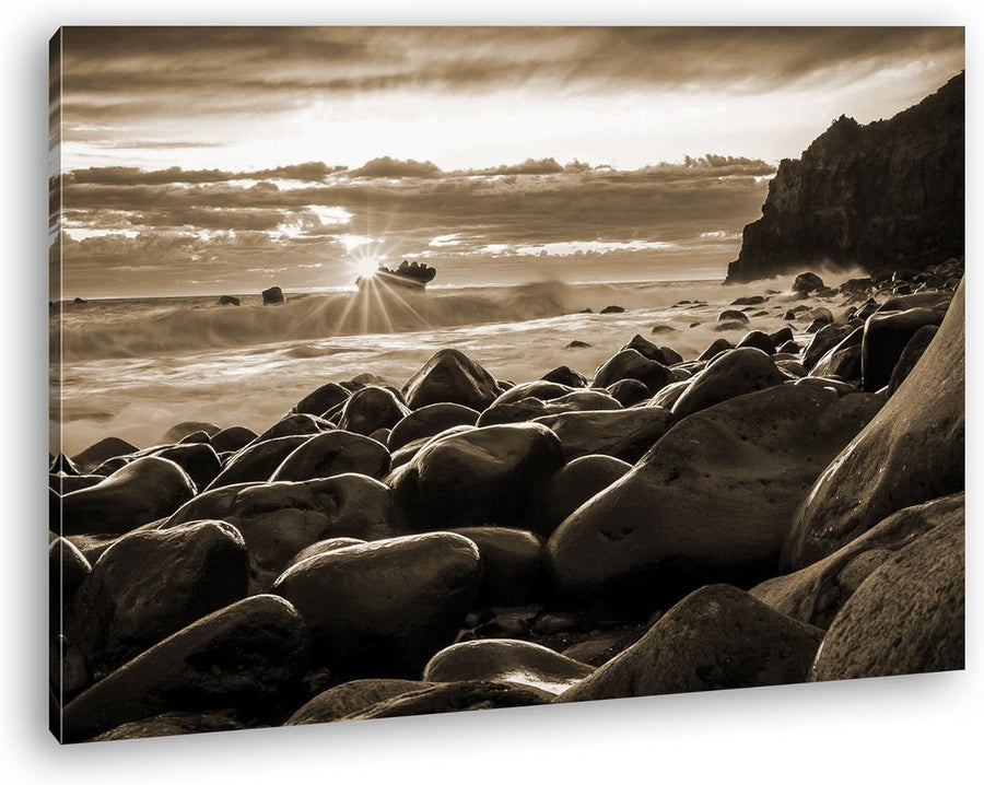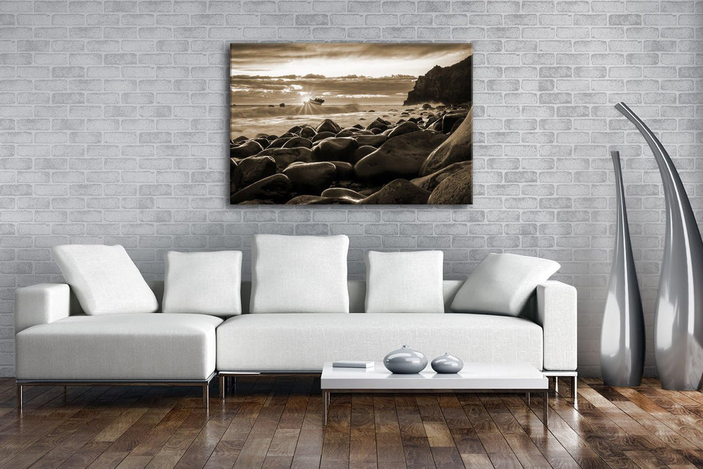 deyoli glatte Steine am Strand Format: 60x40 Effekt: Sepia als Leinwandbild, Motiv fertig gerahmt au