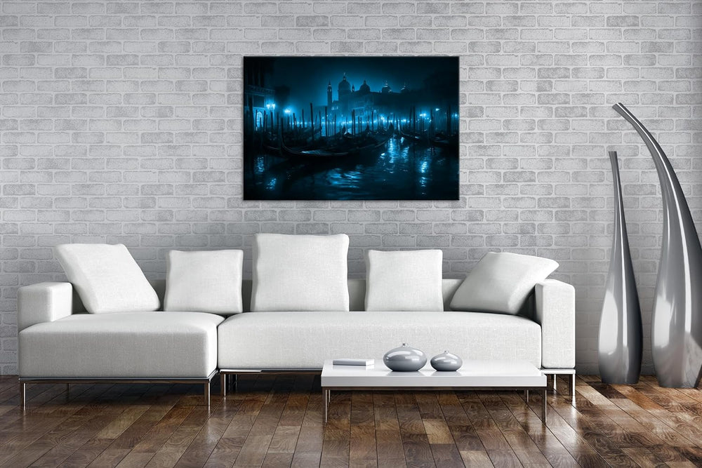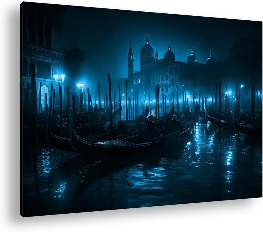 deyoli Gondelstation in Italien Format: 80x60 cm Effekt: Monocrome Blau als Leinwandbild, Motiv fert