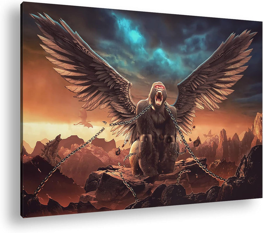 deyoli Gorilla King in Ketten Format: 60x40 als Leinwandbild, Motiv fertig gerahmt auf Echtholzrahme