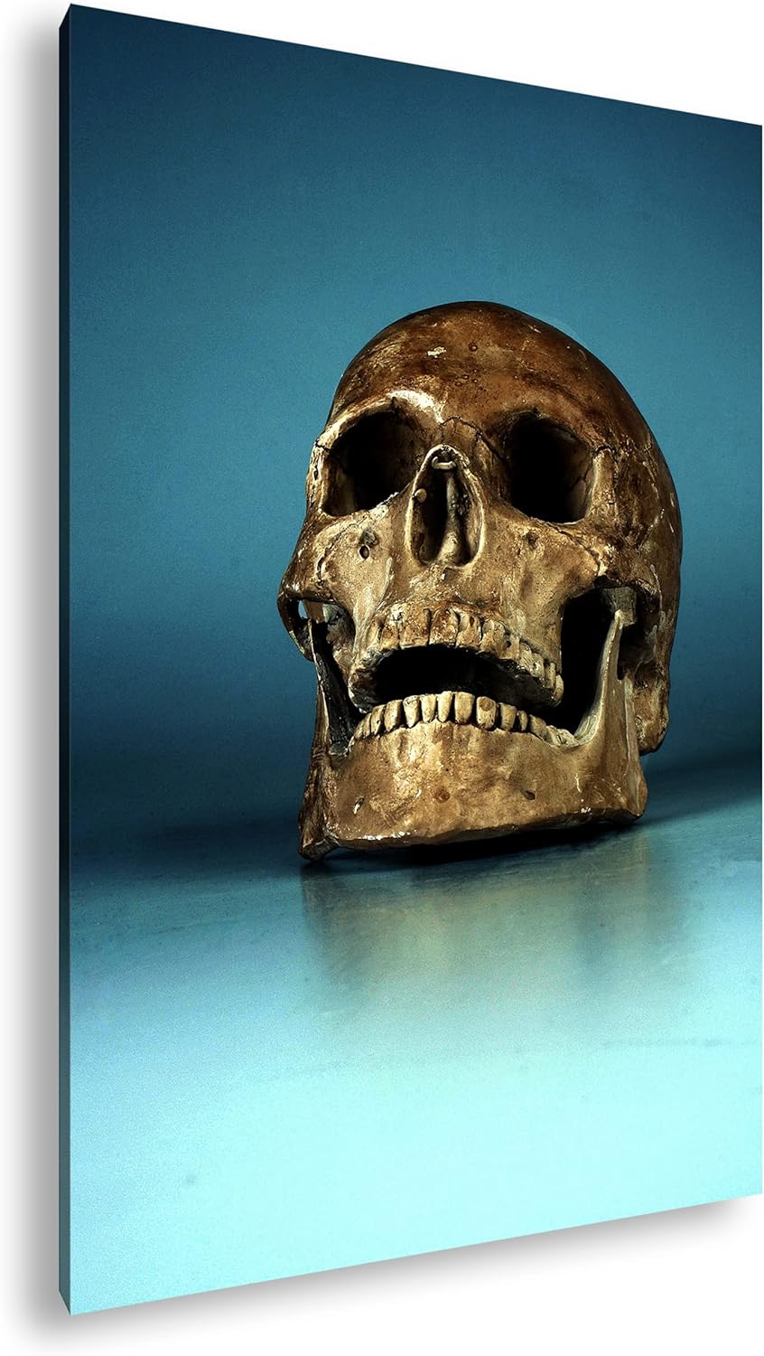 deyoli goldener Schädel im Format: 80x60 als Leinwandbild, Motiv fertig gerahmt auf Echtholzrahmen,