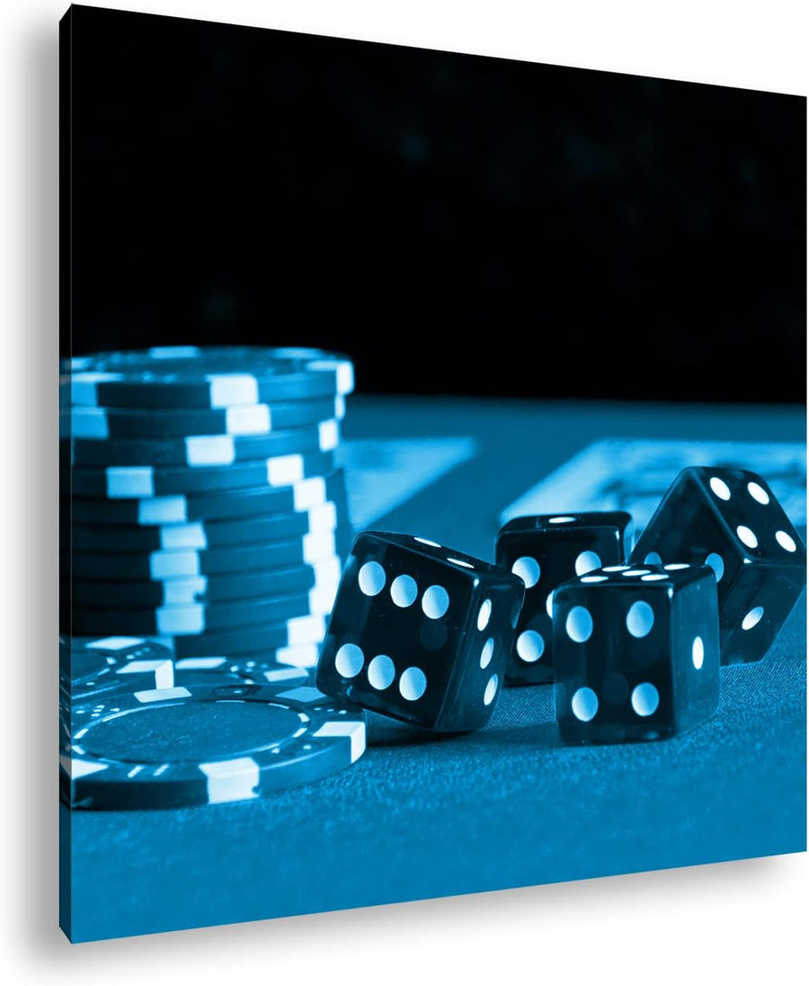 deyoli Glücksspiel Würfel und Poker Chips Format 80x60 Effekt: Monocrome Blau als Leinwandbild, Moti