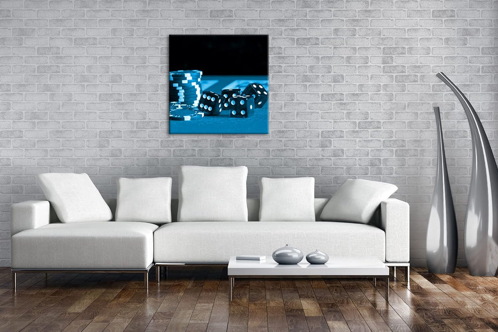 deyoli Glücksspiel Würfel und Poker Chips Format: 40x40 Effekt: Monocrome Blau als Leinwandbild, Mot