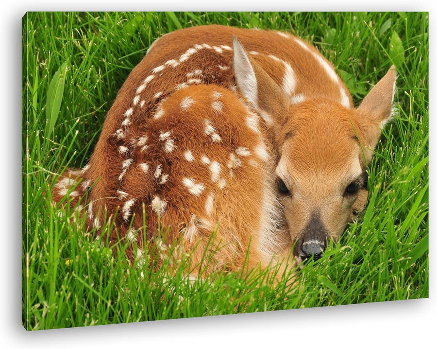 deyoli goldiges Rehkitz im hohen Gras Format: 80x60 als Leinwandbild, Motiv fertig gerahmt auf Echth