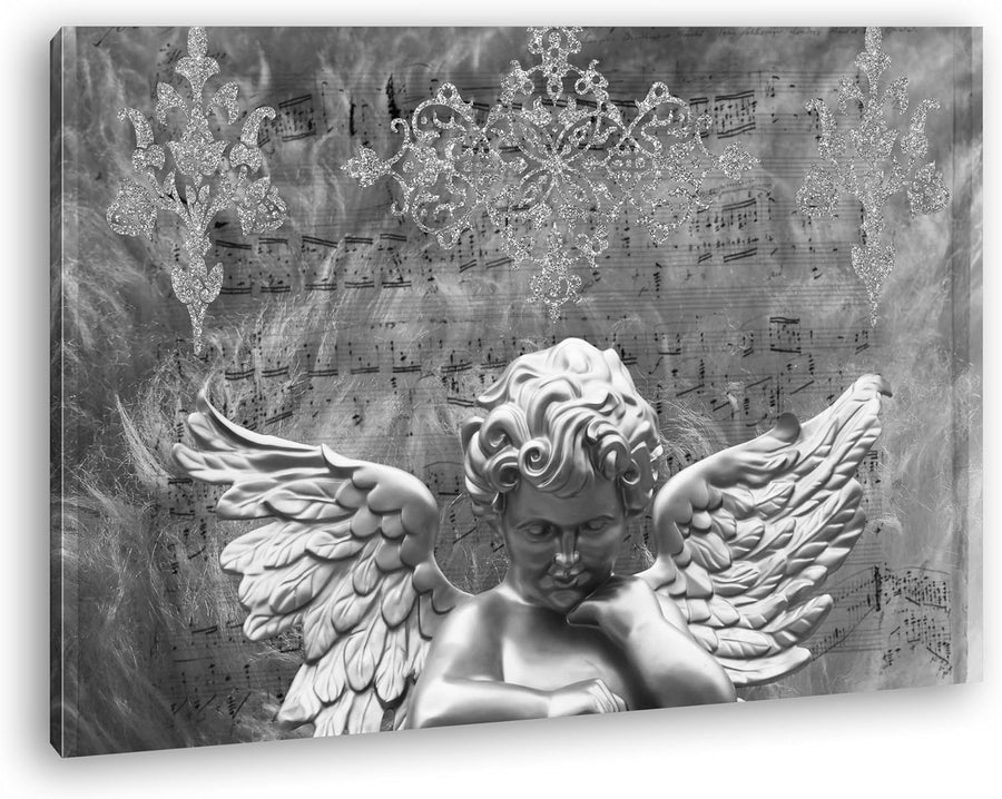 deyoli goldene Engelsstatur Effekt: Schwarz/Weiss Format: 100x70 als Leinwand, Motiv fertig gerahmt
